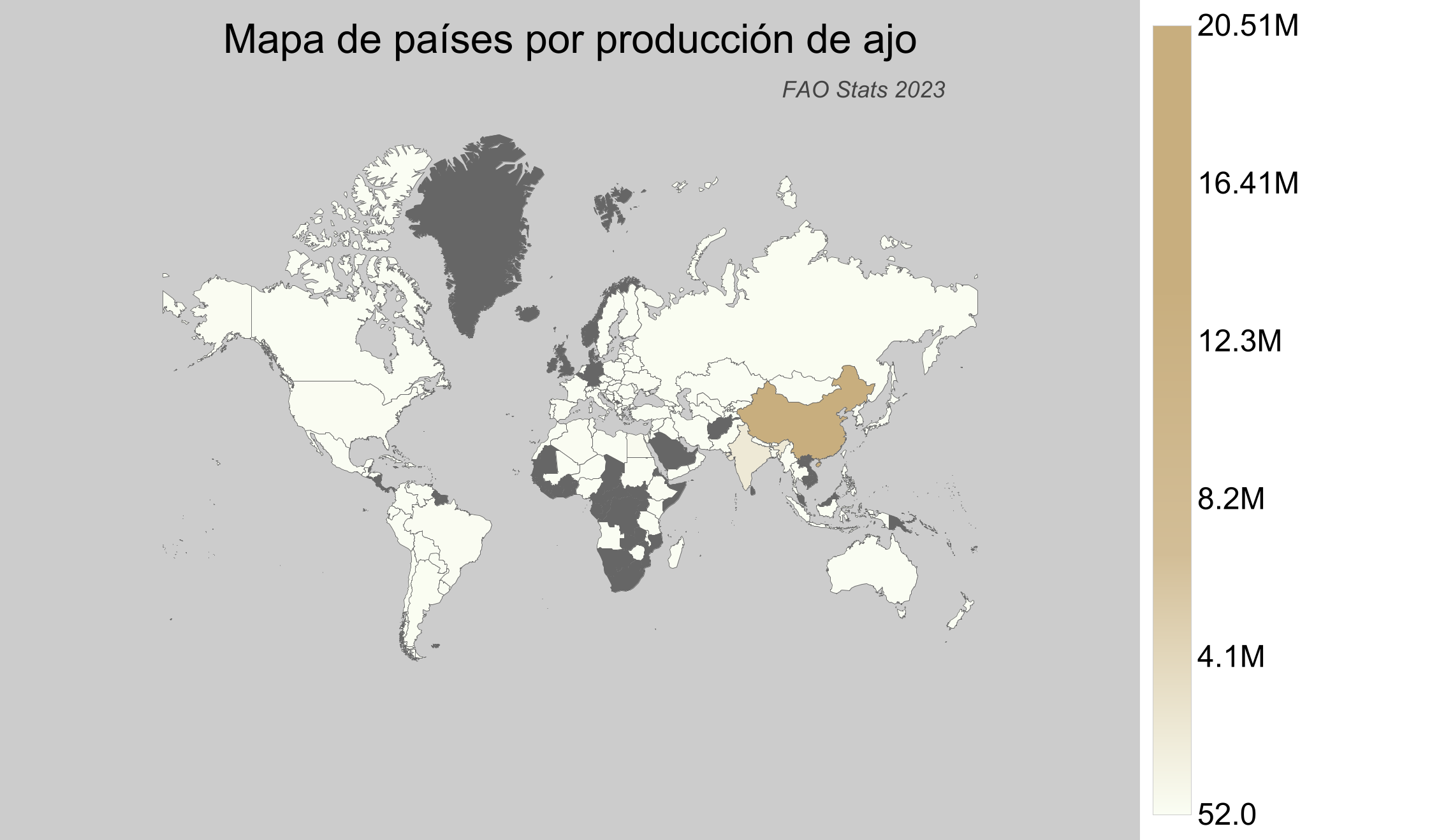 - Argentina, aunque representa solo el 0.54% de la producción mundial de ajo, es un importante productor a nivel regional.
