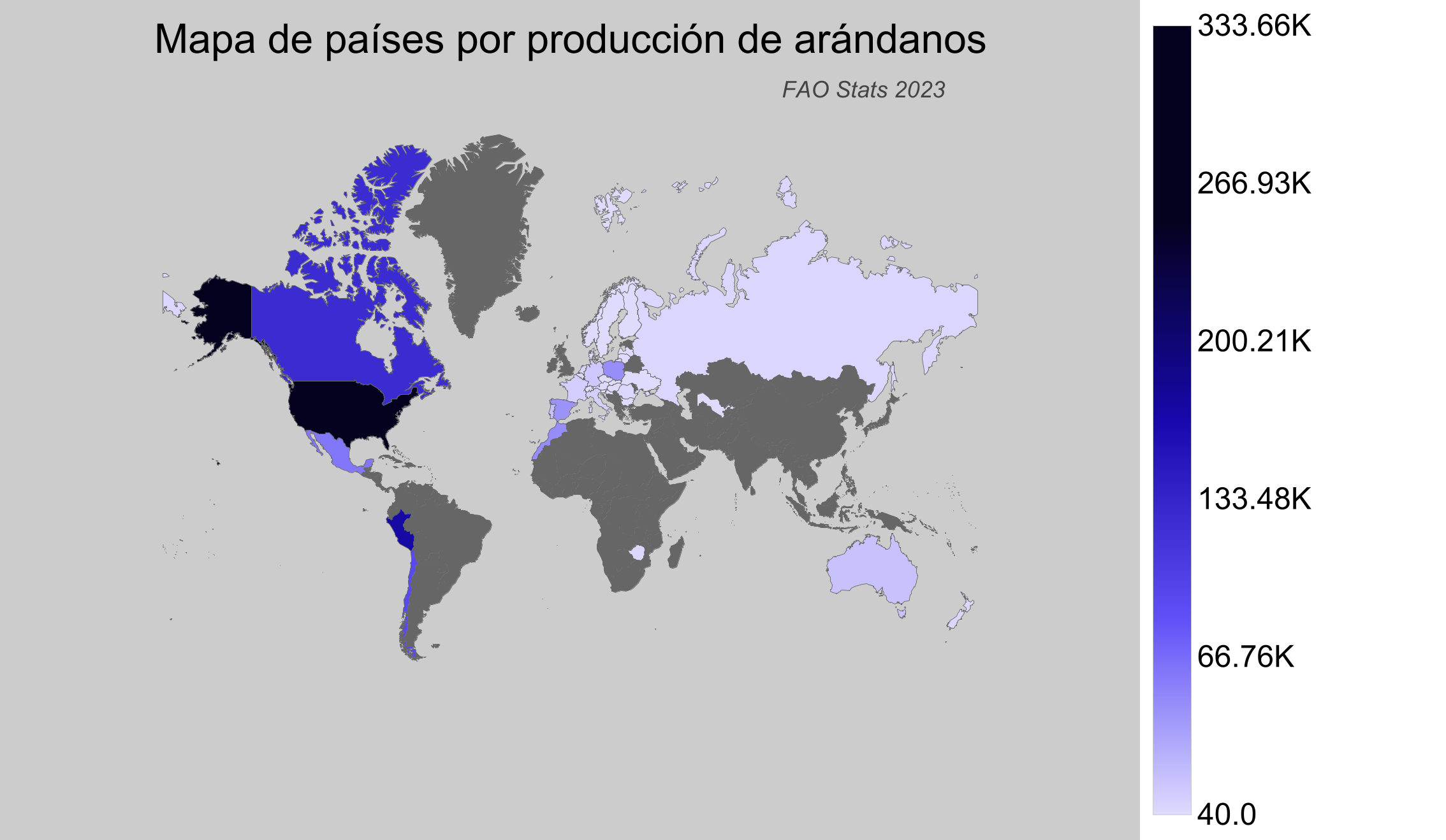 - Argentina no aparece en las estadísticas de producción de arándanos de la FAO para 2023.