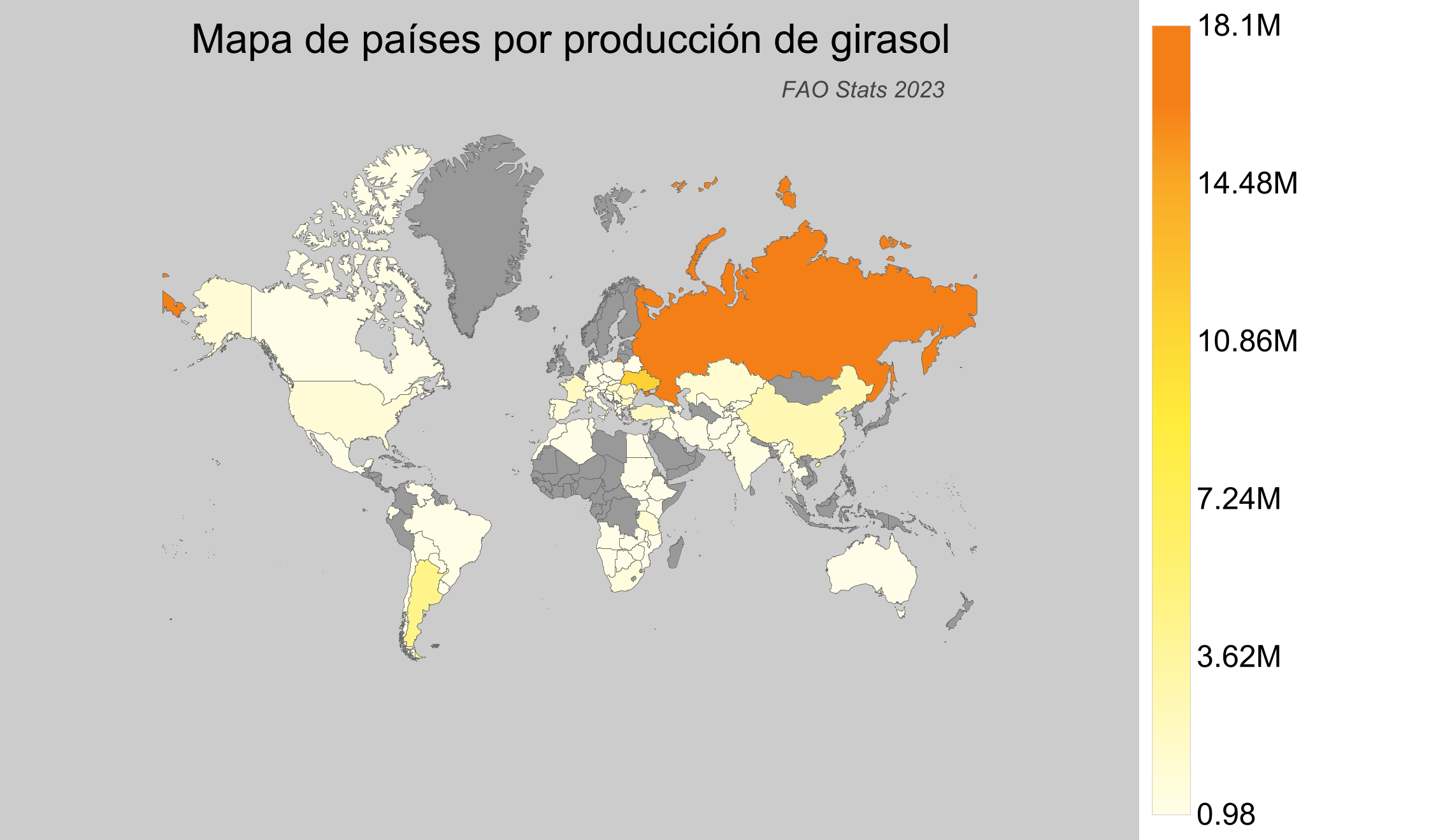 - Federación Rusa: Alrededor de 18.1 millones de toneladas, liderando el mundo en producción de girasol.