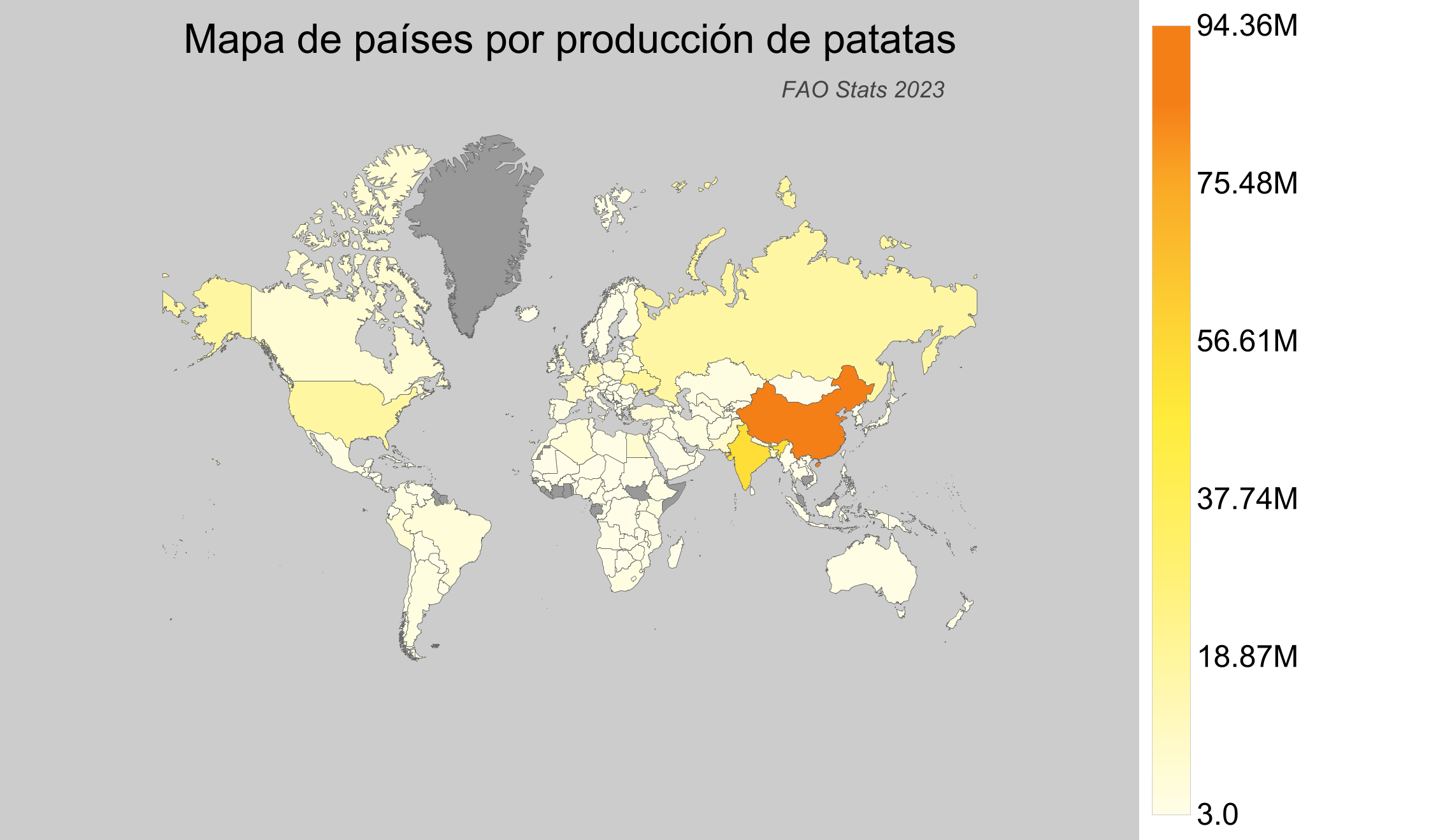 - China lidera con una producción de alrededor de 94 millones de toneladas de papas, siendo el mayor productor mundial.