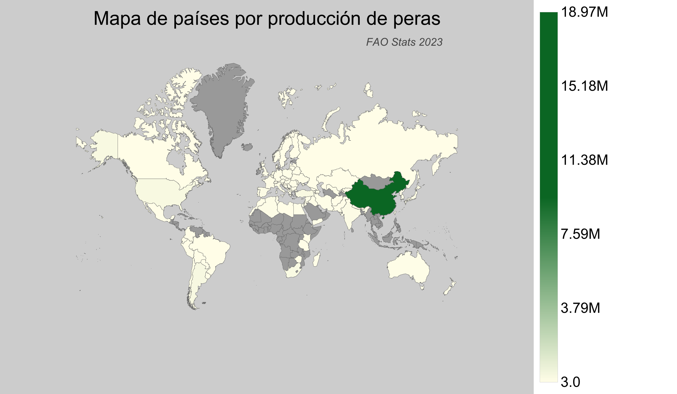 - China se destaca como el principal productor de peras, con una producción impresionante de aproximadamente 19 millones de toneladas.