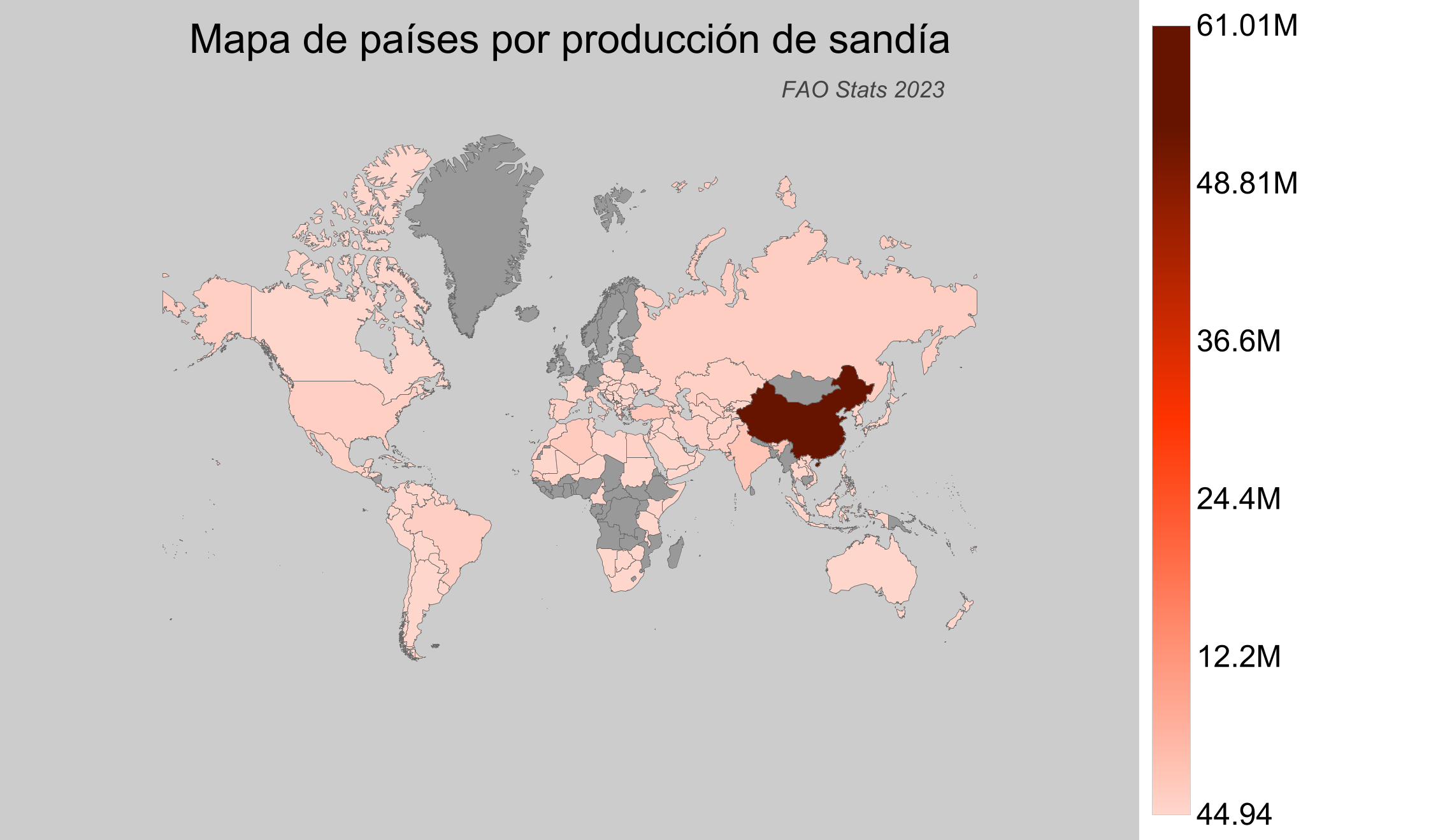 - China es el mayor productor de sandías del mundo, con una impresionante producción de alrededor de 61 millones de toneladas.