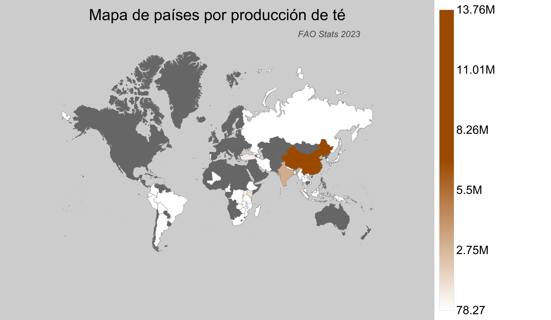 - China encabeza la producción mundial de té con alrededor de 13.77 millones de toneladas.