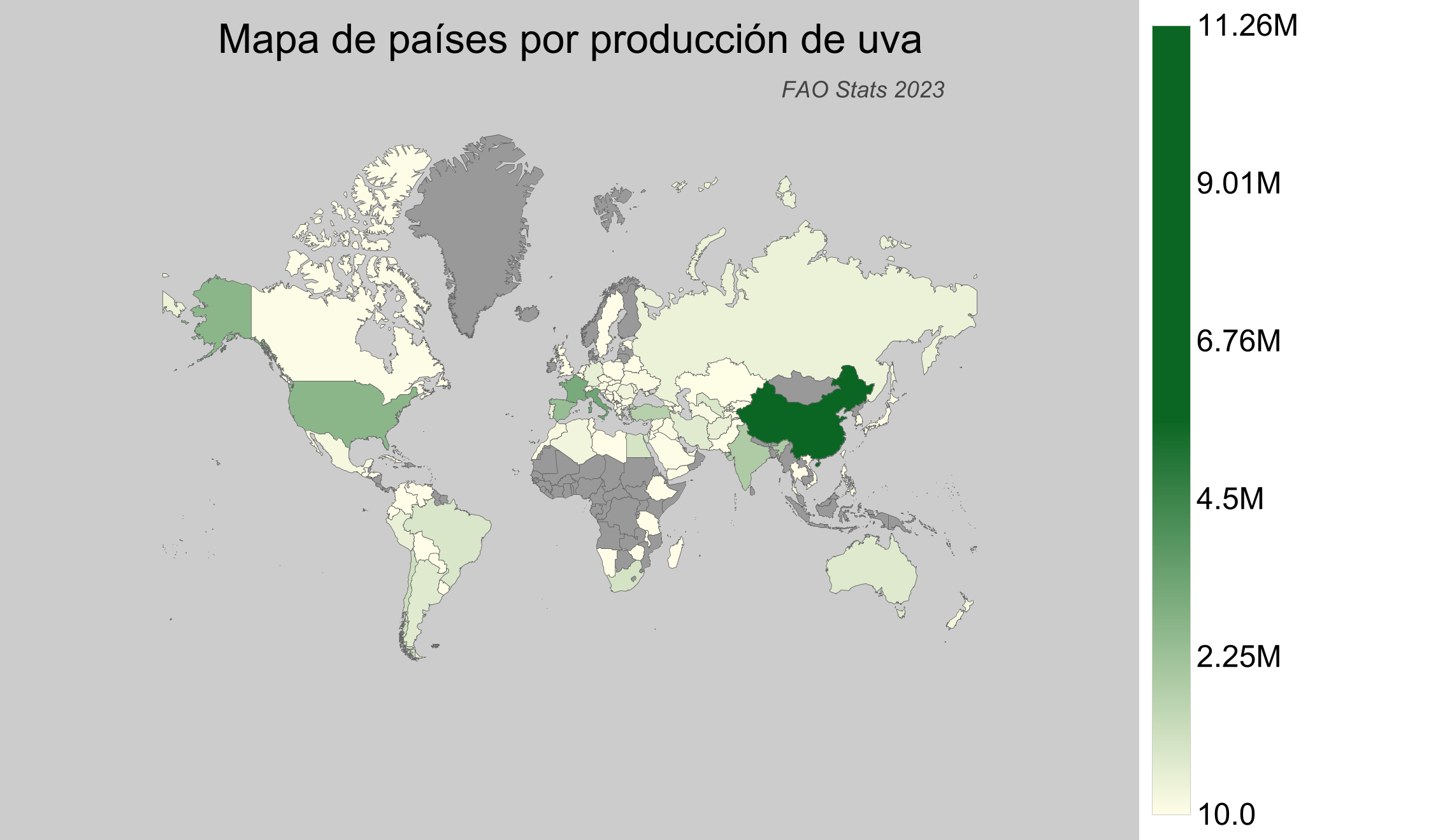 - China lidera la producción global con alrededor de 11 millones de toneladas de uvas.